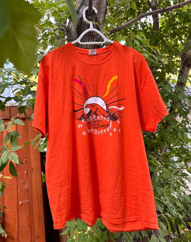 Orange Shirt Day occurs every year on September 30th. On this day, we remember and acknowledge the suffering of Indigenous children who were taken from their families and forced to attend residential schools. We honour Phyllis Webstad of Stswecem’c Xgat’tem First Nation, who has written and spoken about how devastating it was to be taken at age 6 to the local Mission school and subjected to terrible treatment, symbolized by having her new orange shirt immediately taken away; she never saw the shirt again.