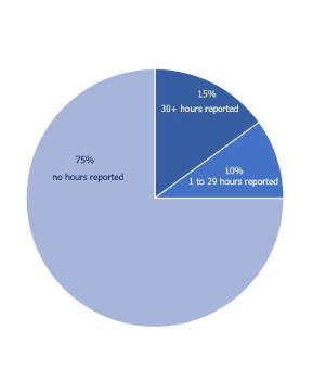 The category of Worship and Theology has the most numbers of hours reported. Note that there are also 10 non-Rostered members in CEP and their hours are also included here.